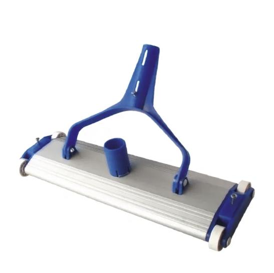 Limpiafondos manual de aluminio de 35 cm con sistema de fijación mediante palomilla, ideal para la limpieza eficiente del fondo de piscinas. Su estructura de aluminio aporta resistencia, ligereza y durabilidad frente a productos químicos y la exposición al sol. Incorpora ruedas y cepillos que permiten un deslizamiento suave y eficaz sobre diferentes superficies. Compatible con pértigas telescópicas, facilita el mantenimiento regular del vaso de la piscina, recogiendo suciedad y sedimentos sin esfuerzo.