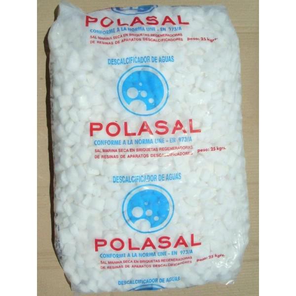 Sal marina compactada tipo briquetas envasada saco de 25 kg. Usos para industria, descalcificadores, lavavajillas, tratamientos de aguas.